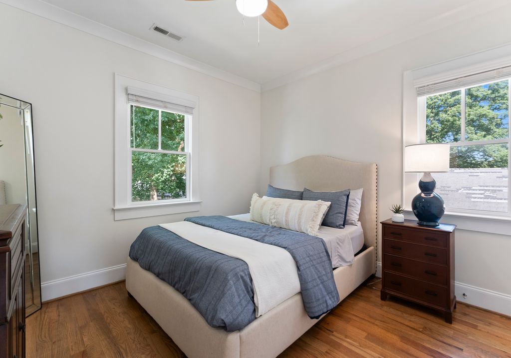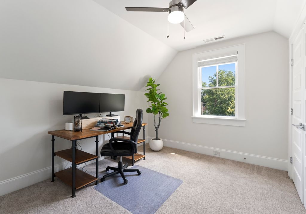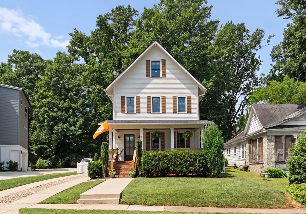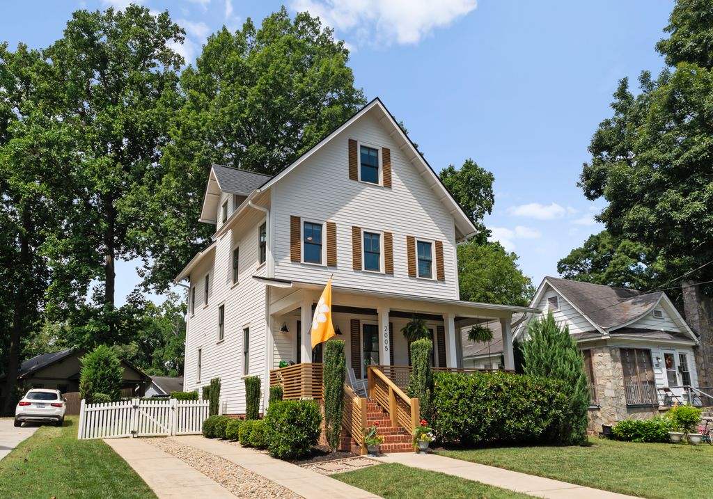 Nestled in the highly sought after Smallwood neighborhood just a short distance to the Gold Line & Uptown Charlotte. Smallwood offers a unique sense of culture & charm. This exceptional home blends modern sophistication with timeless design. Step inside this freshly painted gem with 10ft ceilings & site finished hardwoods. Expansive windows flood the home with natural light, highlighting every refined detail. The kitchen is a chef's dream featuring high-end SS appliances, sleek quartz countertops, soft-close cabinetry & ceiling height cabinets for function & style. Retreat to the luxurious primary suite offering a generous walk-in closet, en suite with dual vanities & seamless walk-in shower. Upper level offers a versatile loft, flex space perfect for media/playroom & an executive office/bedroom to meet today's work from home needs. Relax outside on the covered front porch or the privately fenced in backyard with endless opportunities! Welcome Home!